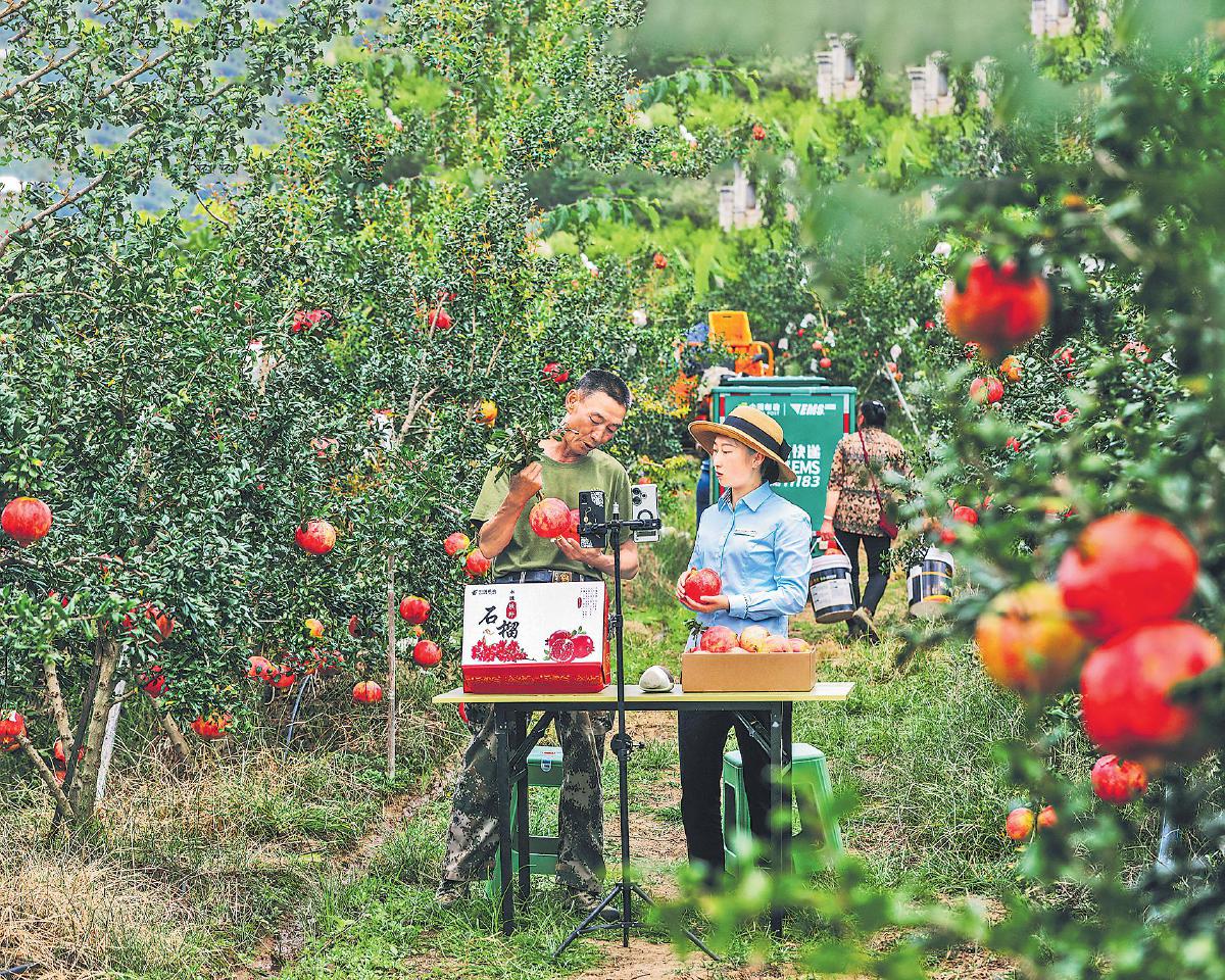9月18日,丽江市永胜县邮政分公司直播团队把直播间搬进石榴园,现场推介国家地理标志产品软籽石榴。